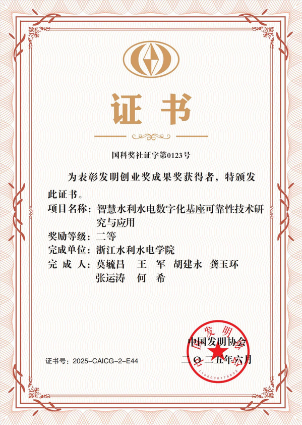 近日,中国发明协会正式公布2025年度发明创业奖评选结果,今年会计算机学院莫毓昌教授团队的“智慧水利水电数字化基座可靠性技术研究与应用”荣获二等奖。