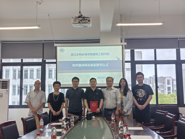 讲座开始前,建工学院举行聘任仪式。齐国舟受聘为工程造价专业教学指导专家,将对工程造价专业人才培养方案制定、学生理论与实际工程能力培养等方面提供指导与帮助。执行院长杜文学为其颁发聘书。